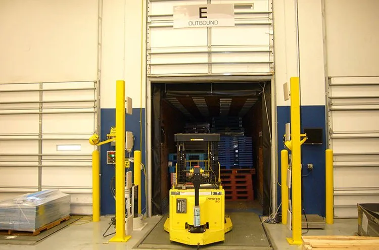 3. When the forklift is passing the exit, the RFID reader there will read the pallet tags to stock-out information, and check whether the products are matched with the production code and position in the stock-out list or not.